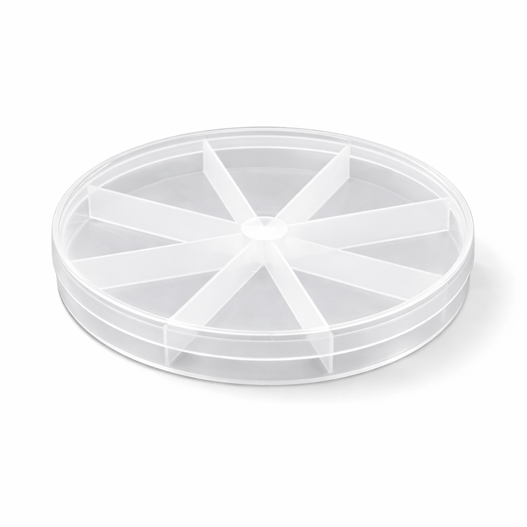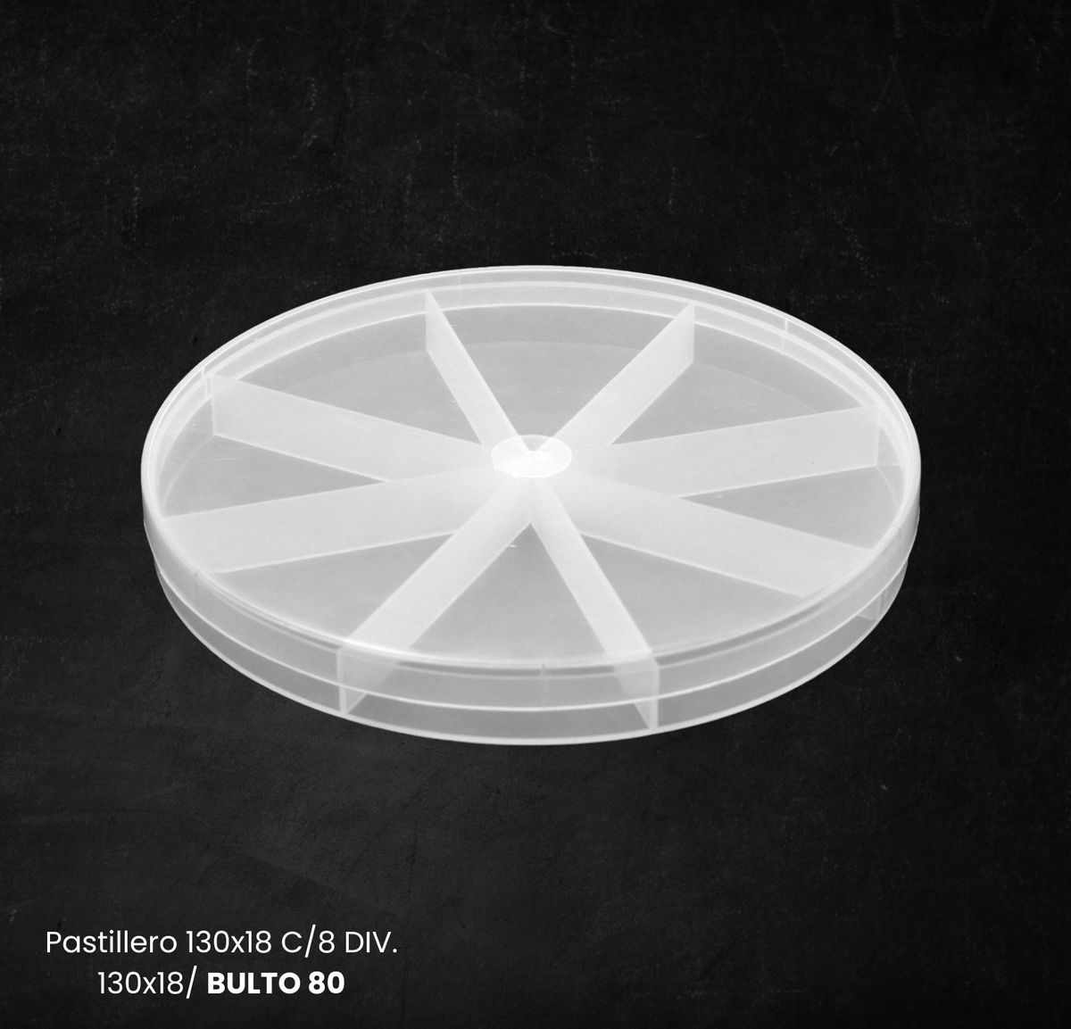 Pastillero Plastico fabricado en PP con tapa a presion y 8 divisiones fijas.