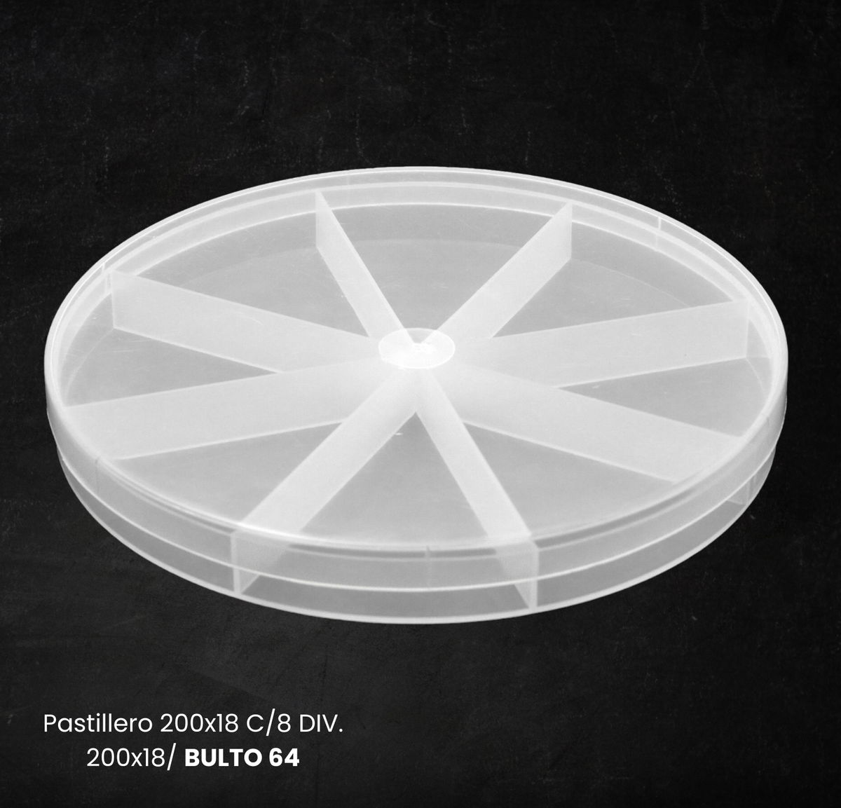 Pastillero Plastico fabricado en PP con tapa a presion y 8 divisiones fijas.