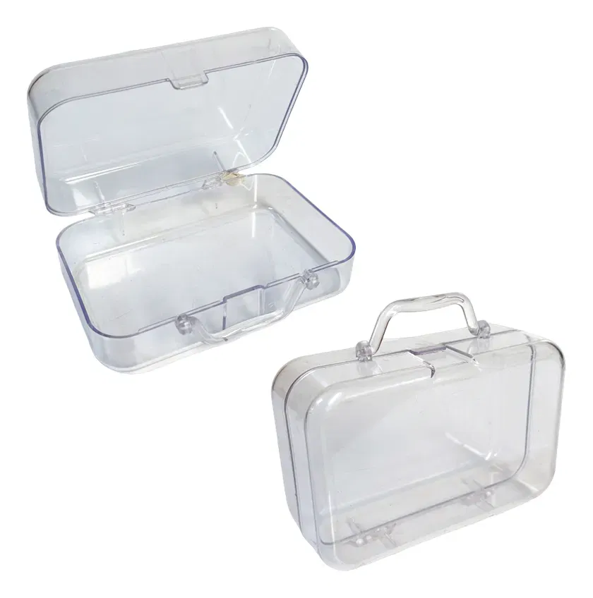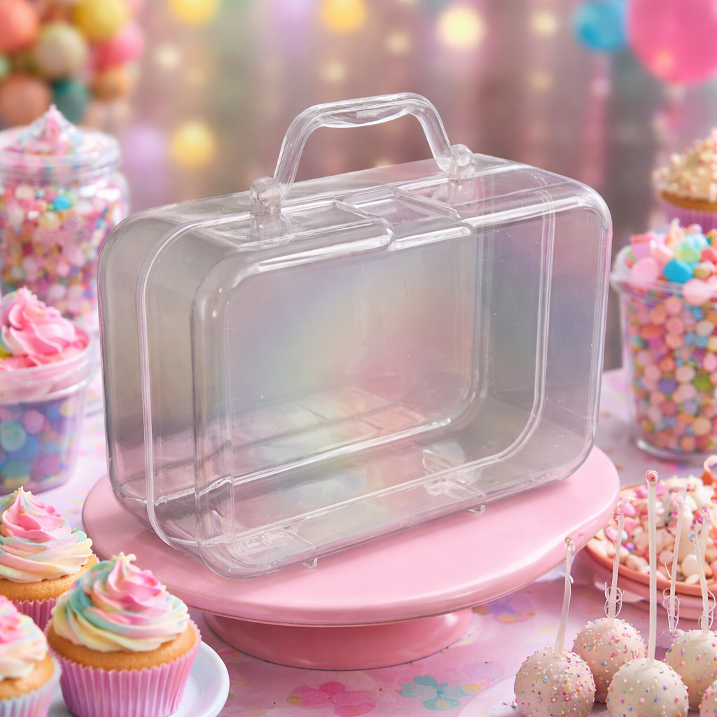 Fabricada en resistente material PS, esta elegante caja es perfecta como souvenir para todo tipo de fiestas y eventos.