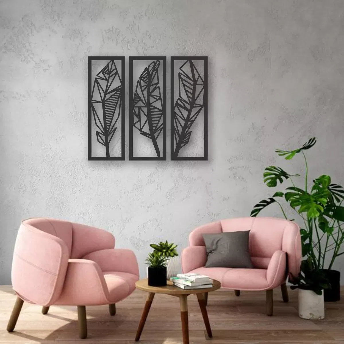 CUADRO TRIPTICO PLUMAS 68X60CM