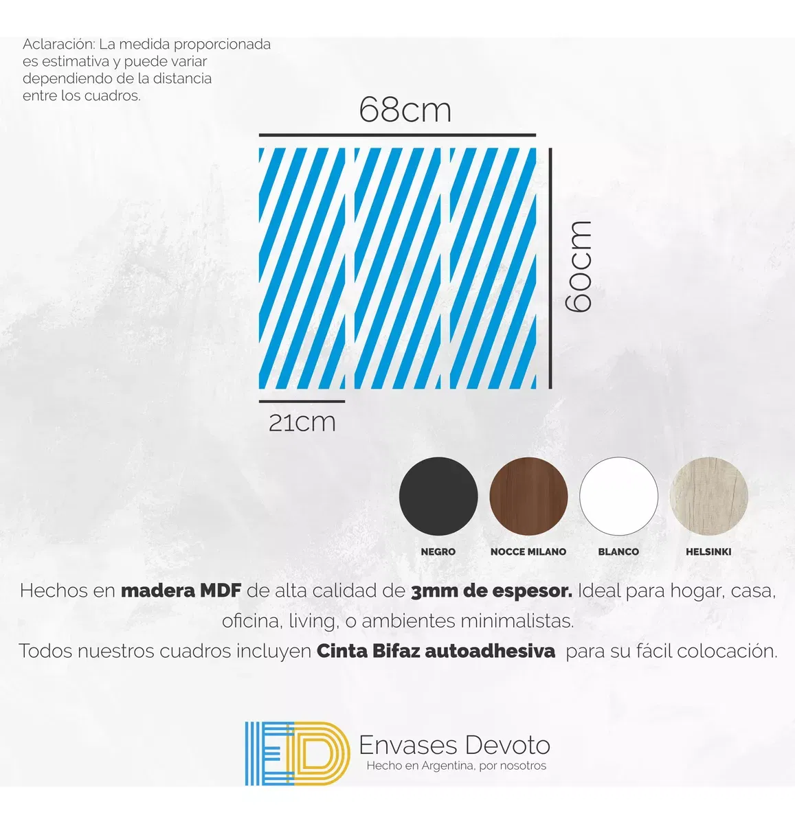 EN EL TITULO O EN LAS IMAGENES INDICAN LAS MEDIDAS. Cuadros modernos decorativos, hechos en madera MDF de alta calidad de 3mm de espesor. ideal para hogar, casa, oficina, living, o ambientes minimalistas. - Incluye Cinta autoadhesiva doble faz de alta resistencia, para pegar directo en la pared. - Colores disponibles: NEGRO, BLANCO, NOCCE MILANO (Marrón)