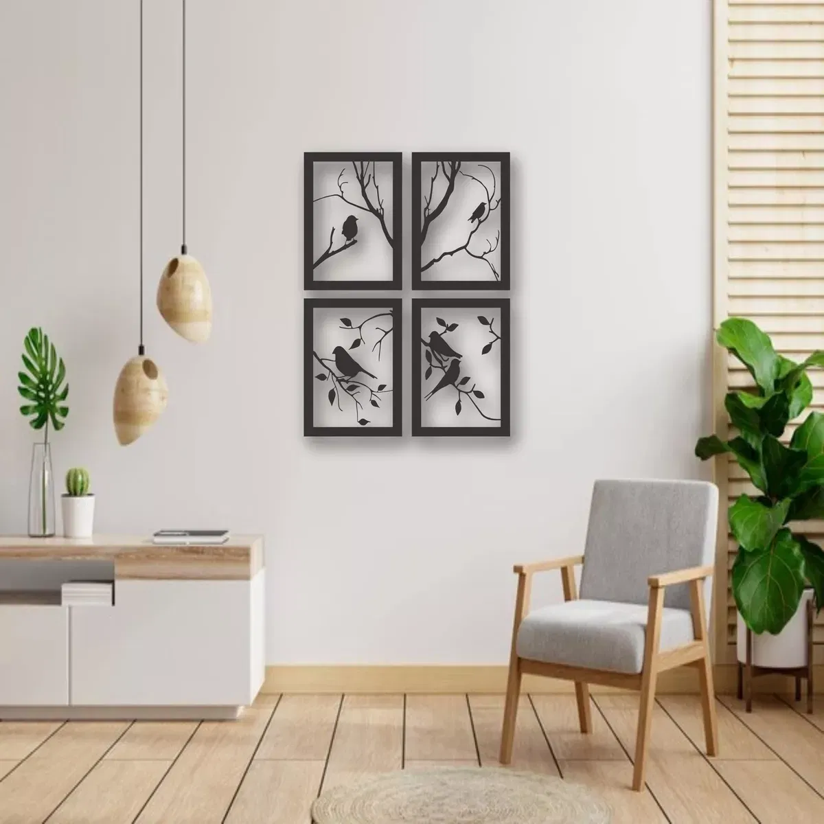 CUADRO CUADRIPTICO PAJARITOS 45X63CM