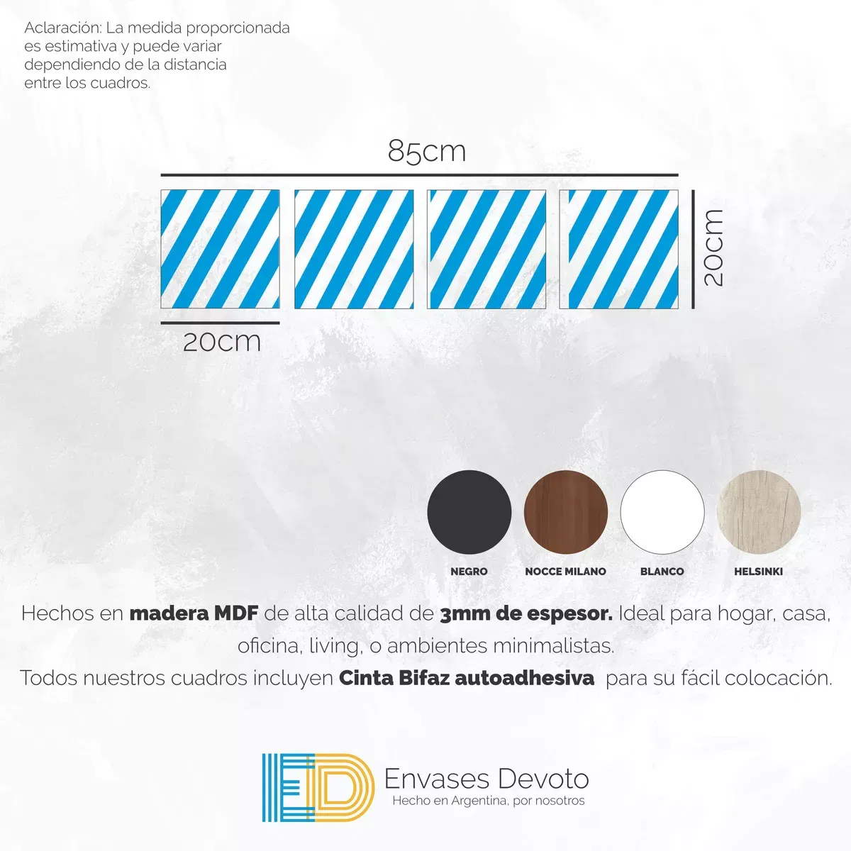 EN EL TITULO O EN LAS IMAGENES INDICAN LAS MEDIDAS. Cuadros modernos decorativos, hechos en madera MDF de alta calidad de 3mm de espesor. ideal para hogar, casa, oficina, living, o ambientes minimalistas. - Incluye Cinta autoadhesiva doble faz de alta resistencia, para pegar directo en la pared. - Colores disponibles: NEGRO, BLANCO, NOCCE MILANO (Marrón)