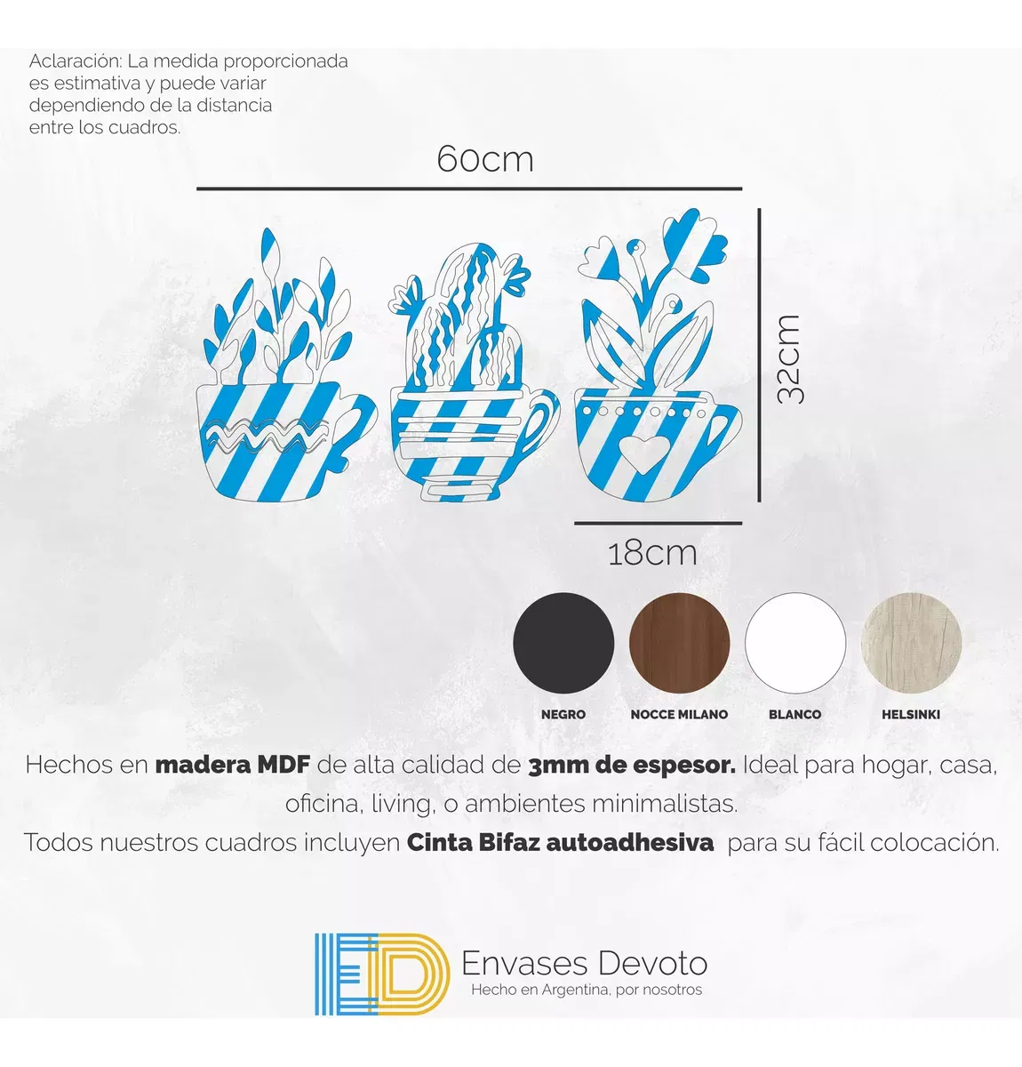 EN EL TITULO O EN LAS IMAGENES INDICAN LAS MEDIDAS. Cuadros modernos decorativos, hechos en madera MDF de alta calidad de 3mm de espesor. ideal para hogar, casa, oficina, living, o ambientes minimalistas. - Incluye Cinta autoadhesiva doble faz de alta resistencia, para pegar directo en la pared. - Colores disponibles: NEGRO, BLANCO, NOCCE MILANO (Marrón)