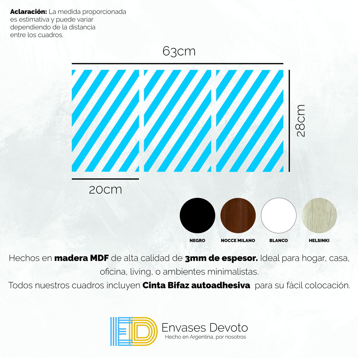 EN EL TITULO O EN LAS IMAGENES INDICAN LAS MEDIDAS. Cuadros modernos decorativos, hechos en madera MDF de alta calidad de 3mm de espesor. ideal para hogar, casa, oficina, living, o ambientes minimalistas. - Incluye Cinta autoadhesiva doble faz de alta resistencia, para pegar directo en la pared. - Colores disponibles: NEGRO, BLANCO, NOCCE MILANO (Marrón)