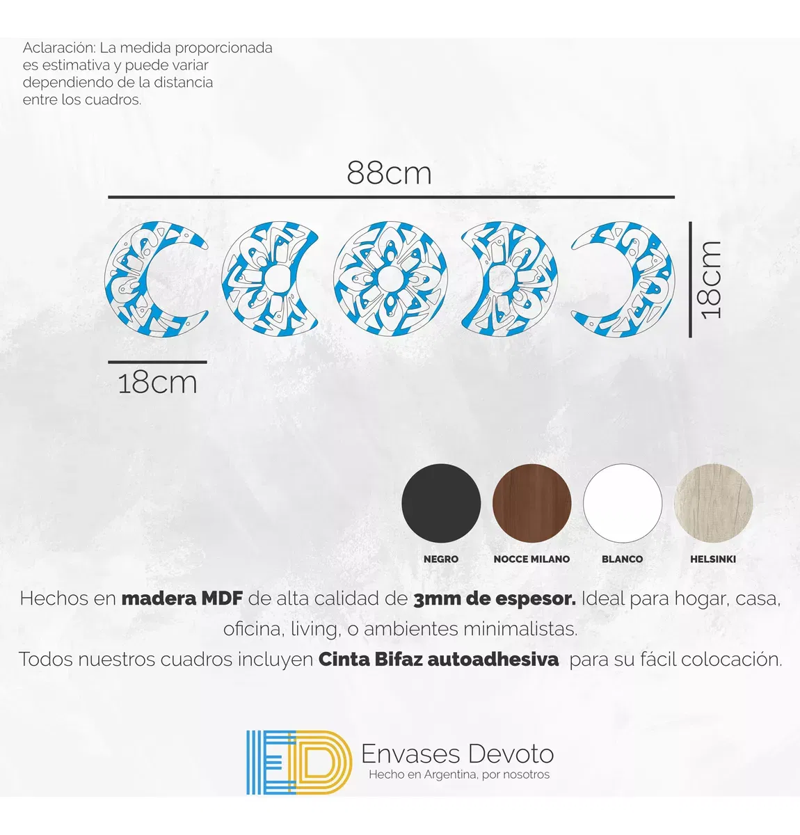 EN EL TITULO O EN LAS IMAGENES INDICAN LAS MEDIDAS. Cuadros modernos decorativos, hechos en madera MDF de alta calidad de 3mm de espesor. ideal para hogar, casa, oficina, living, o ambientes minimalistas. - Incluye Cinta autoadhesiva doble faz de alta resistencia, para pegar directo en la pared. - Colores disponibles: NEGRO, BLANCO, NOCCE MILANO (Marrón)