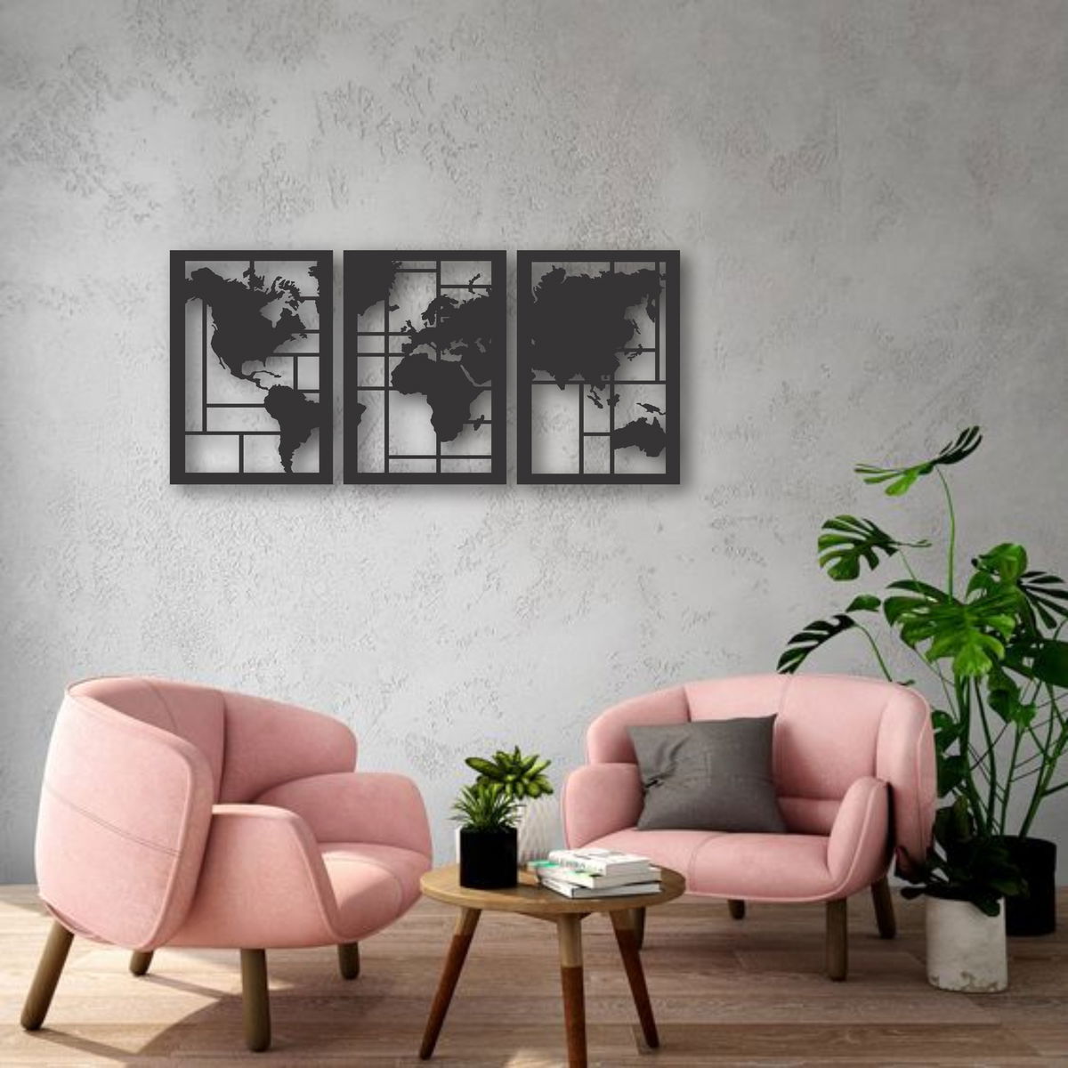 CUADRO TRIPTICO MAPAMUNDI 61X28