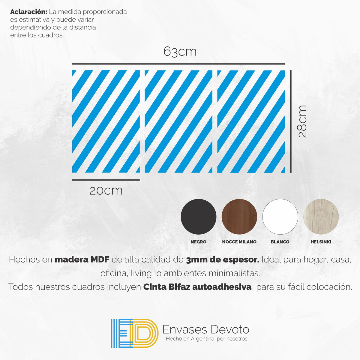 EN EL TITULO O EN LAS IMAGENES INDICAN LAS MEDIDAS. Cuadros modernos decorativos, hechos en madera MDF de alta calidad de 3mm de espesor. ideal para hogar, casa, oficina, living, o ambientes minimalistas. - Incluye Cinta autoadhesiva doble faz de alta resistencia, para pegar directo en la pared. - Colores disponibles: NEGRO, BLANCO, NOCCE MILANO (Marrón)