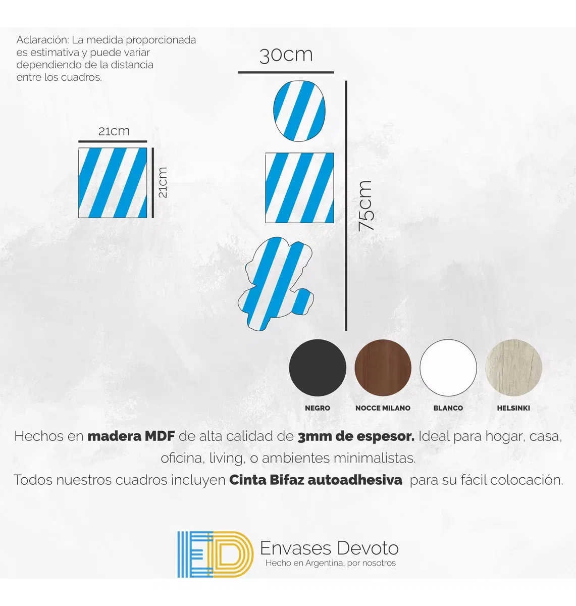 EN EL TITULO O EN LAS IMAGENES INDICAN LAS MEDIDAS. Cuadros modernos decorativos, hechos en madera MDF de alta calidad de 3mm de espesor. ideal para hogar, casa, oficina, living, o ambientes minimalistas. - Incluye Cinta autoadhesiva doble faz de alta resistencia, para pegar directo en la pared. - Colores disponibles: NEGRO, BLANCO, NOCCE MILANO (Marrón)