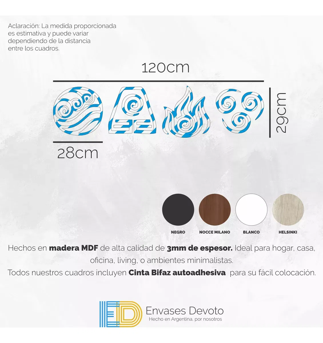 EN EL TITULO O EN LAS IMAGENES INDICAN LAS MEDIDAS. Cuadros modernos decorativos, hechos en madera MDF de alta calidad de 3mm de espesor. ideal para hogar, casa, oficina, living, o ambientes minimalistas. - Incluye Cinta autoadhesiva doble faz de alta resistencia, para pegar directo en la pared. - Colores disponibles: NEGRO, BLANCO, NOCCE MILANO (Marrón)
