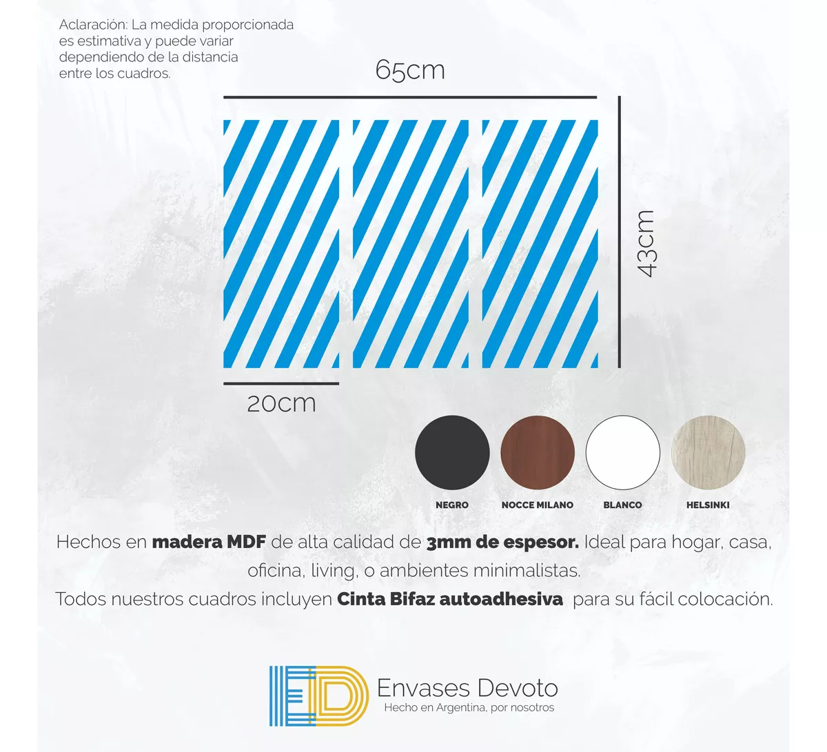 EN EL TITULO O EN LAS IMAGENES INDICAN LAS MEDIDAS. Cuadros modernos decorativos, hechos en madera MDF de alta calidad de 3mm de espesor. ideal para hogar, casa, oficina, living, o ambientes minimalistas. - Incluye Cinta autoadhesiva doble faz de alta resistencia, para pegar directo en la pared. - Colores disponibles: NEGRO, BLANCO, NOCCE MILANO (Marrón)