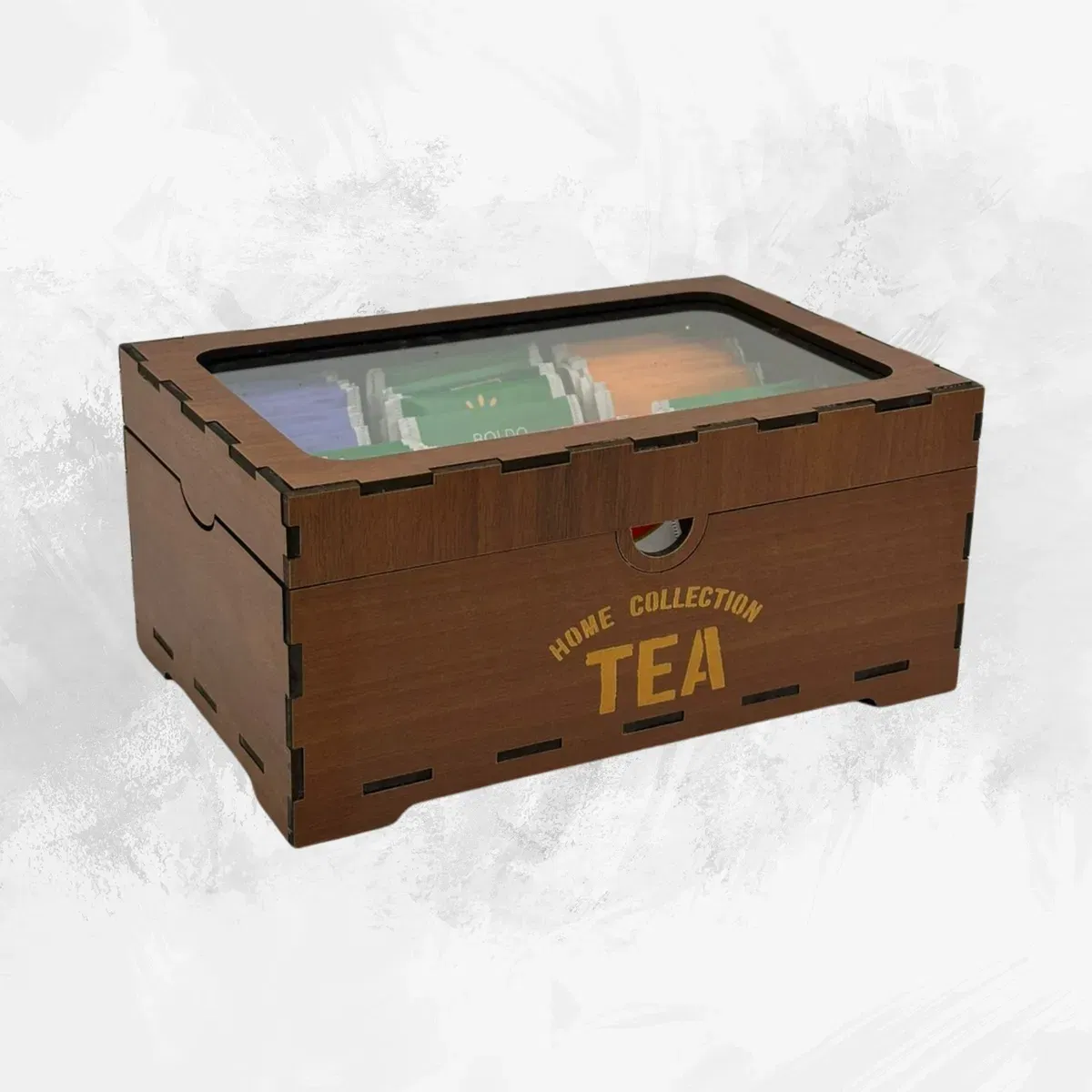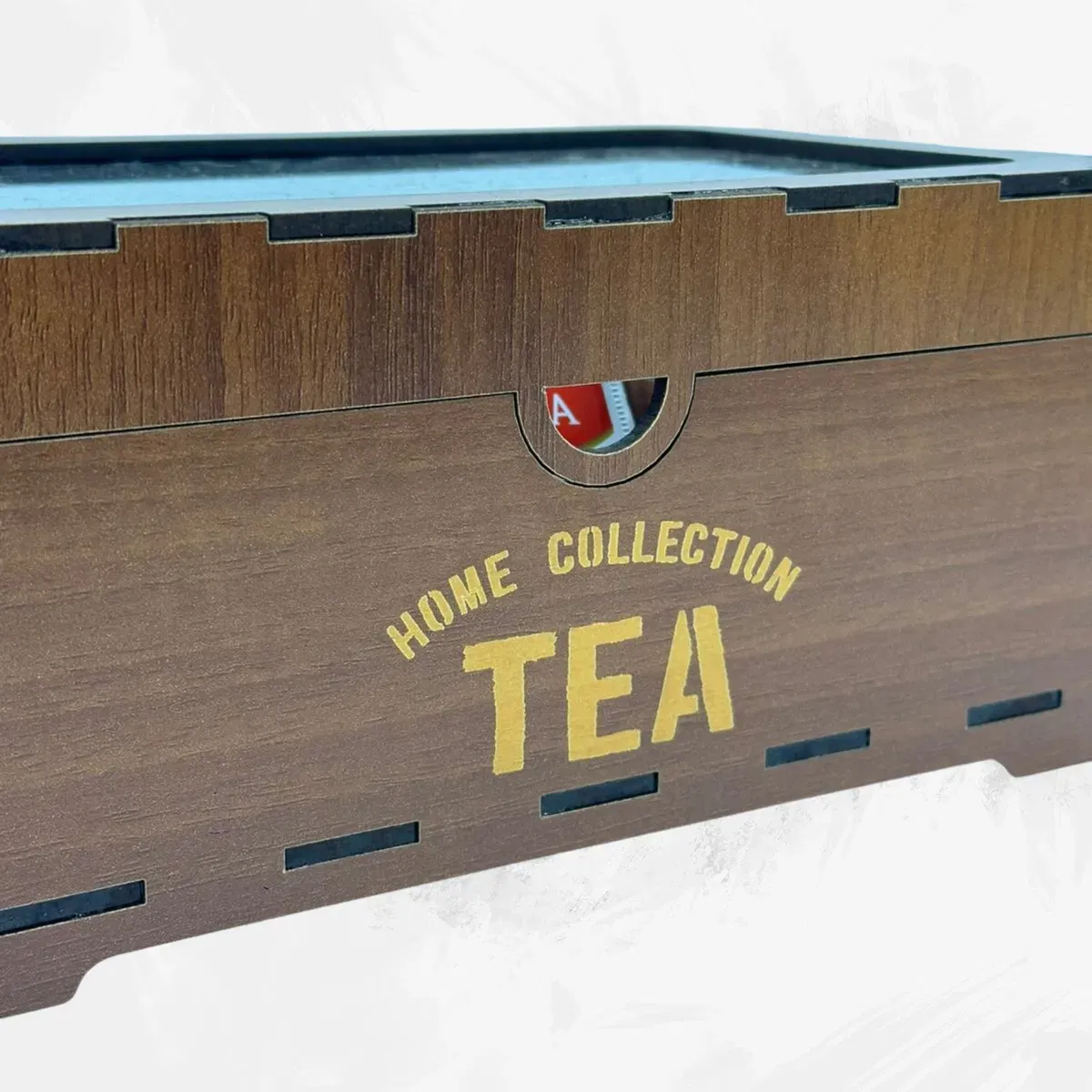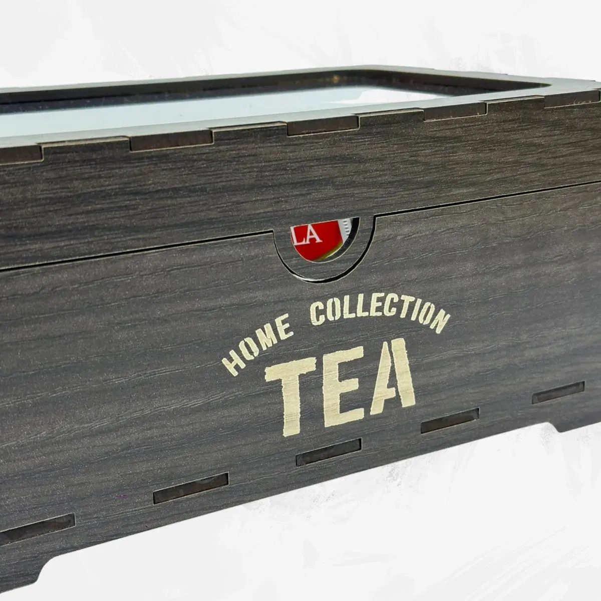 - Cantidad de divisiones: 6 - Medidas: 22cm de largo x 14,50cm de ancho x 10cm de alto - Material: Madera 3mm (MDF) en varios colores - Tapa: Plástico PET transparente (simil vidrio)