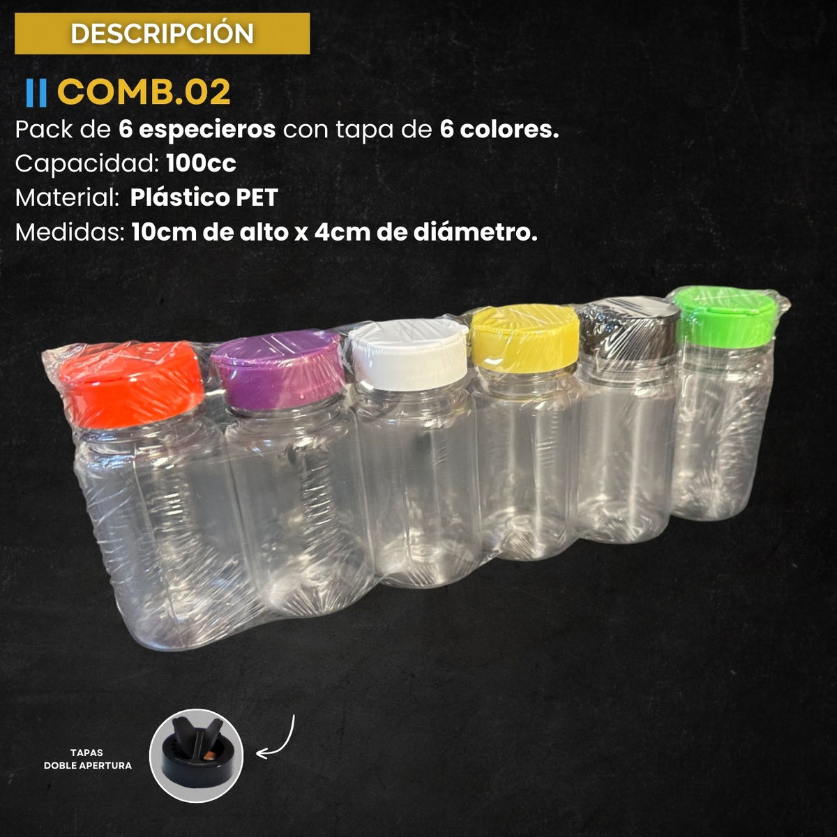 Incluyen tapas doble apertura rosca 38mm, de un lado sirve para verter el contenido de manera controlada, y del otro lado se abre por completo para acceder al contenido de forma más amplia.