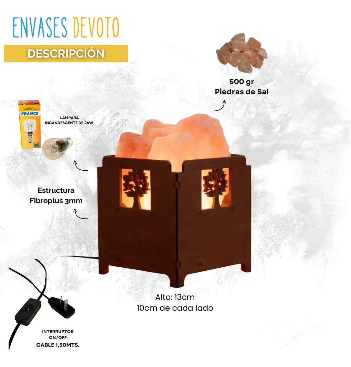 - Medidas: 13 cm de altura x 10 cm de cada lado
