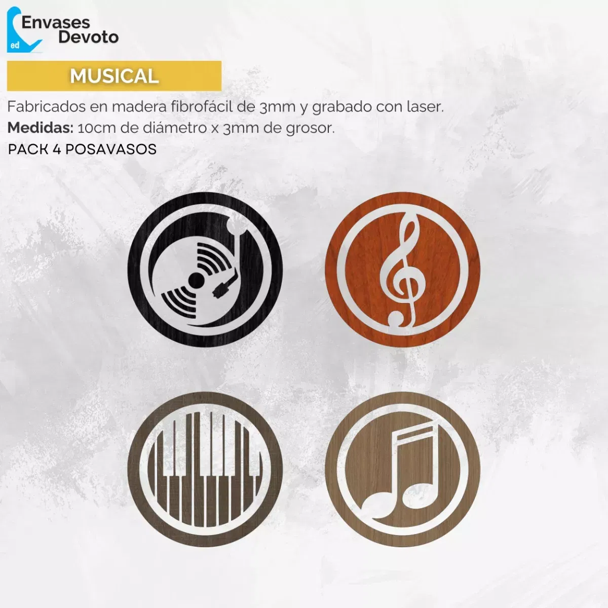 POSAVASO GRABADOS CUADRIPTICO MUSICA PACK 4 UNIDADES