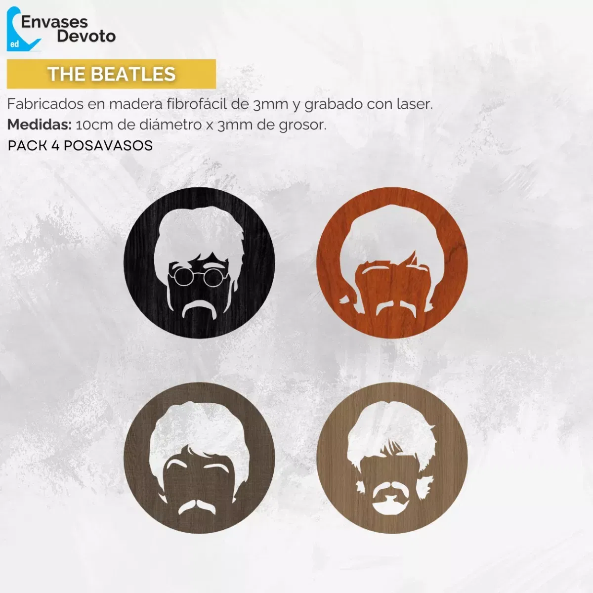 - Cantidad: 1 pack equivale a 4 posavasos