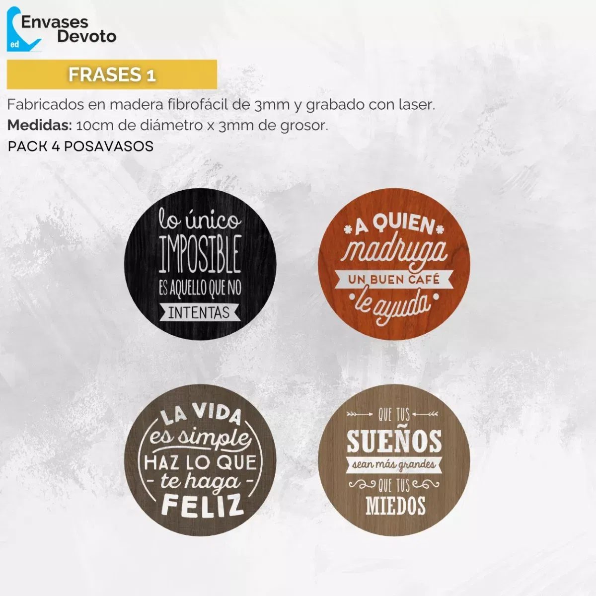 - Cantidad: 1 pack equivale a 4 posavasos