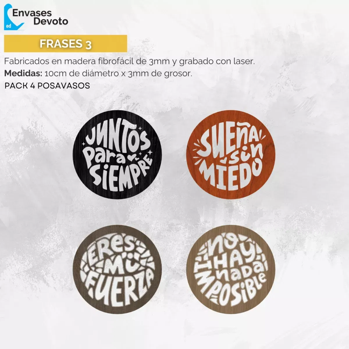 - Cantidad: 1 pack equivale a 4 posavasos