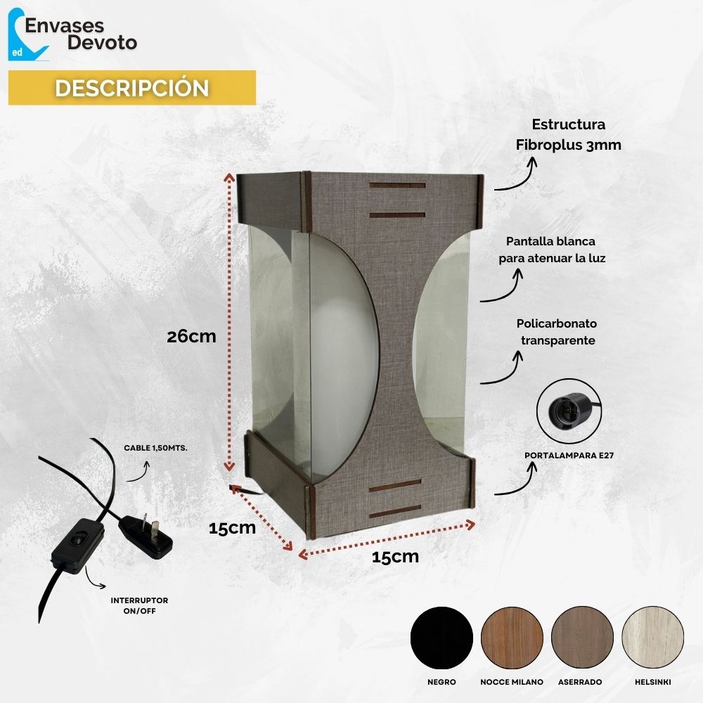 - Medidas: 26cm de alto y 15cm de cada lado